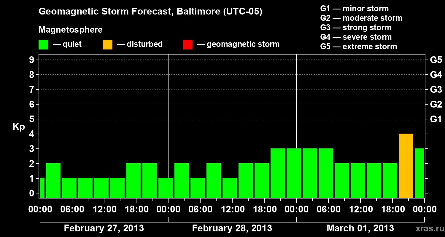 Geomagnetic storm forecast in Baltimore for Feb 27, 2013