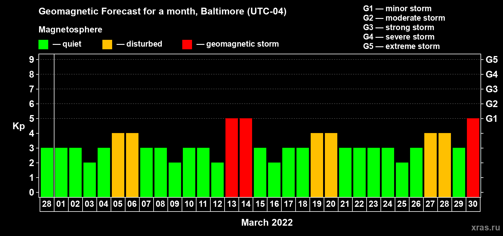 Geomagnetic storm forecast in Baltimore for Feb 28, 2022