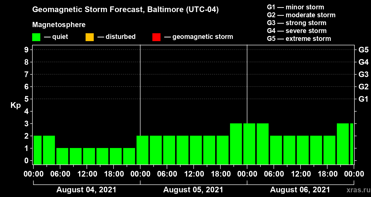 Geomagnetic storm forecast in Baltimore for Aug 04, 2021