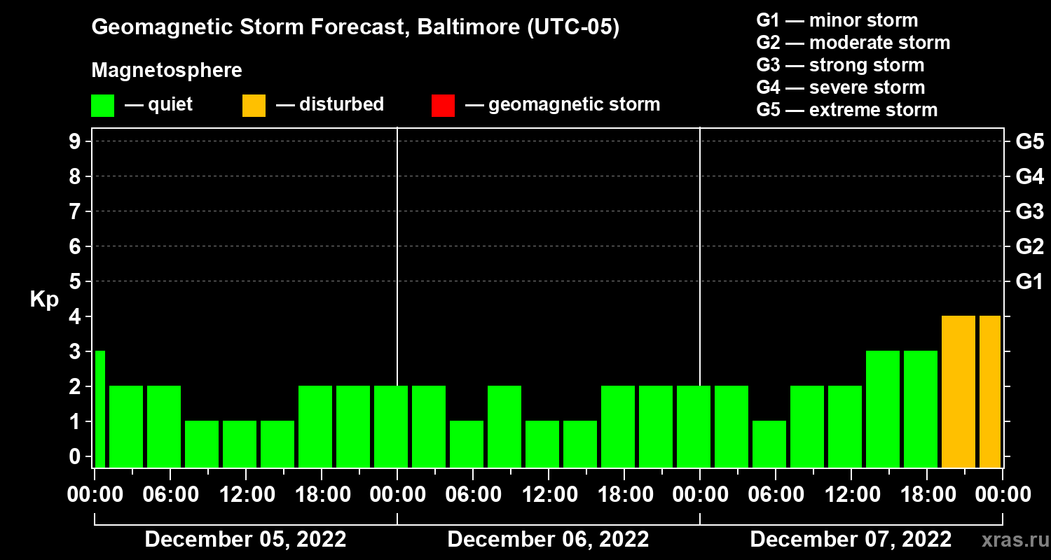 Geomagnetic storm forecast in Baltimore for Dec 05, 2022
