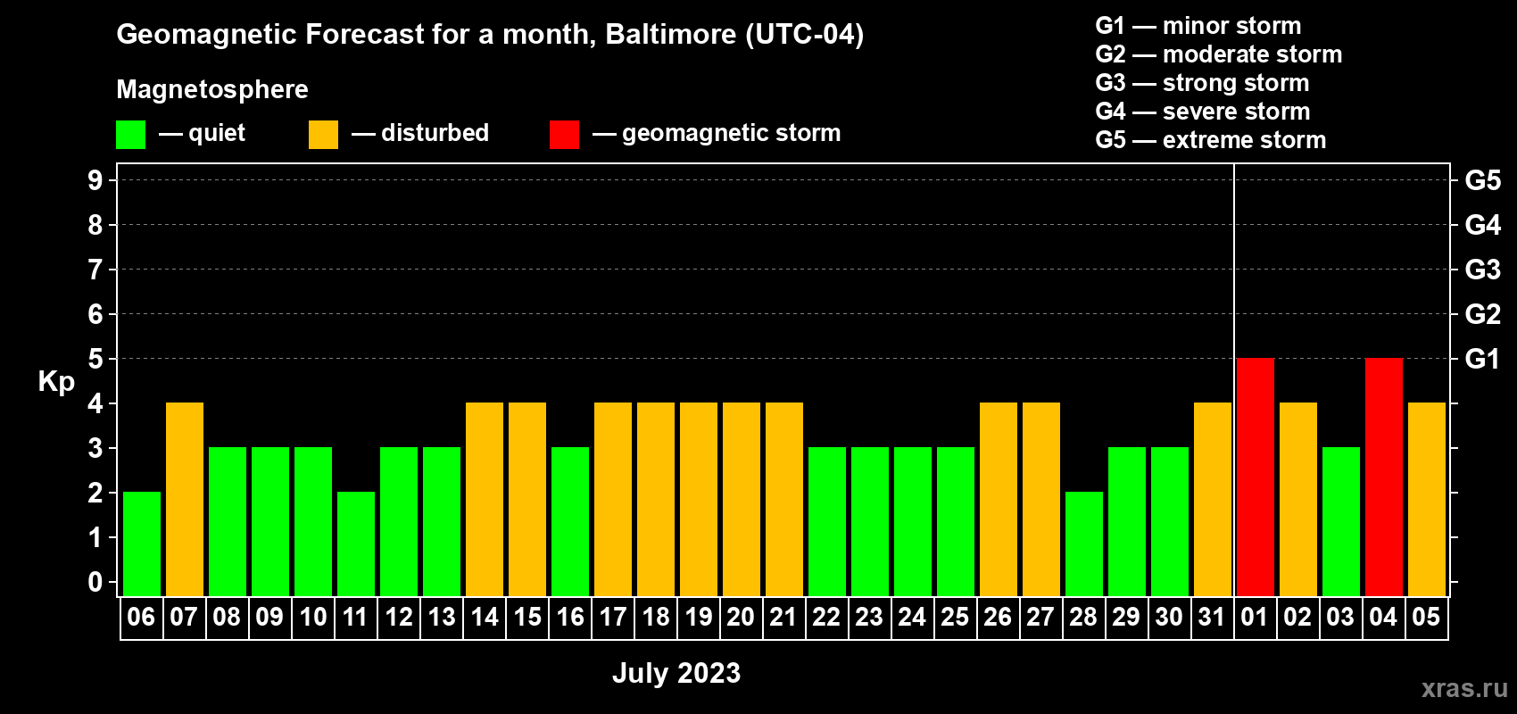 Geomagnetic storm forecast in Baltimore for Jul 06, 2023