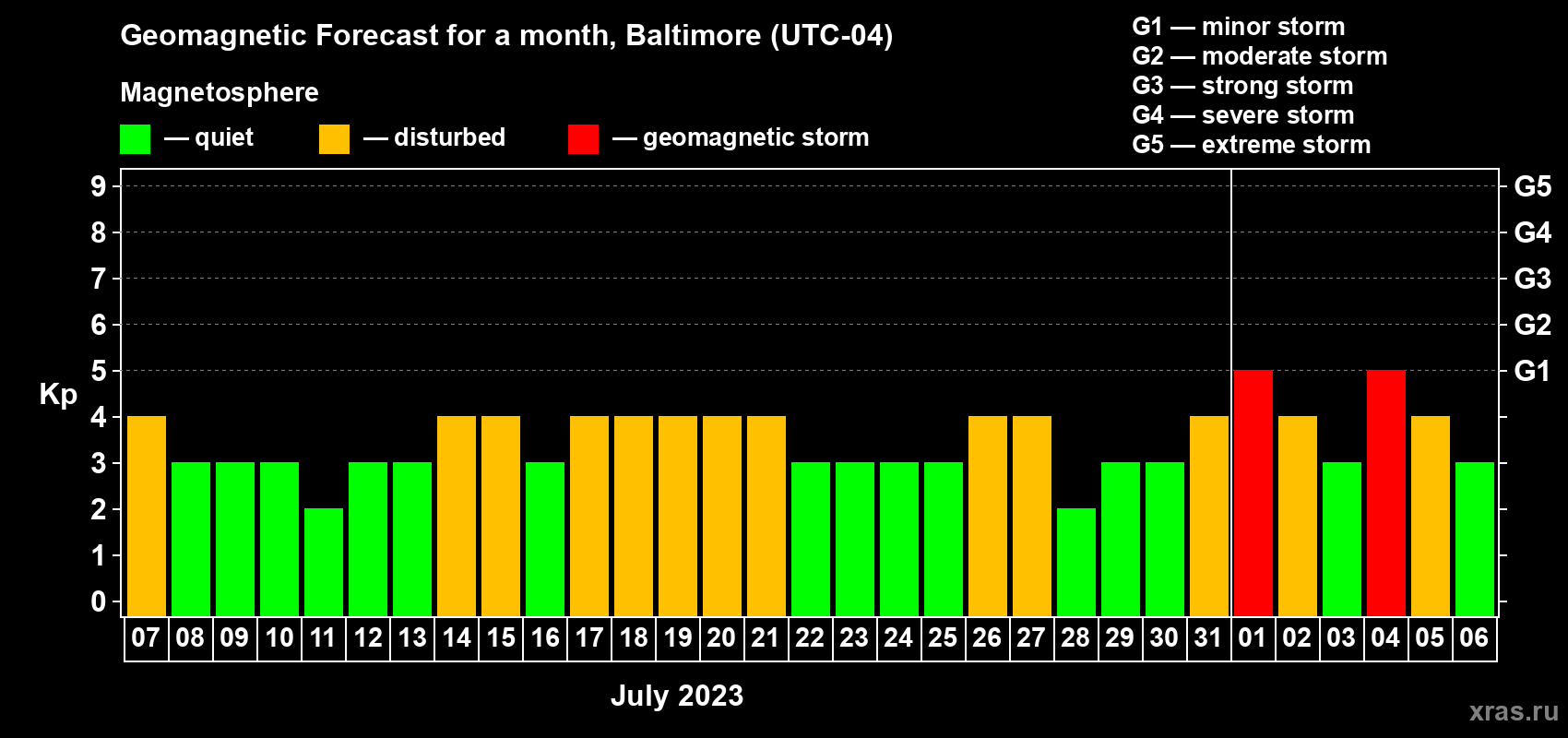 Geomagnetic storm forecast in Baltimore for Jul 07, 2023