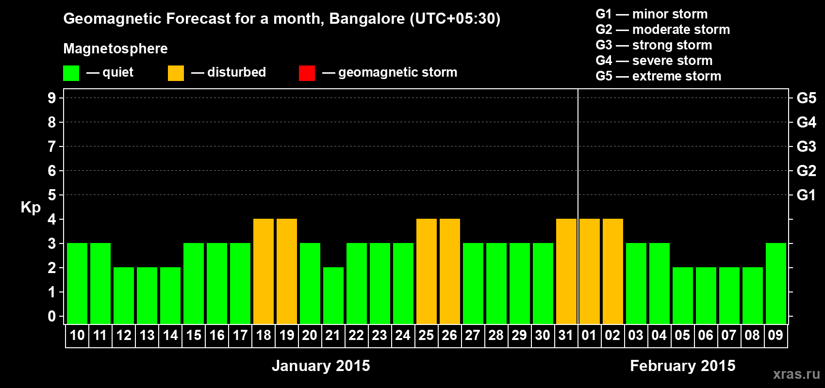 Geomagnetic storm forecast in Bangalore for Jan 10, 2015