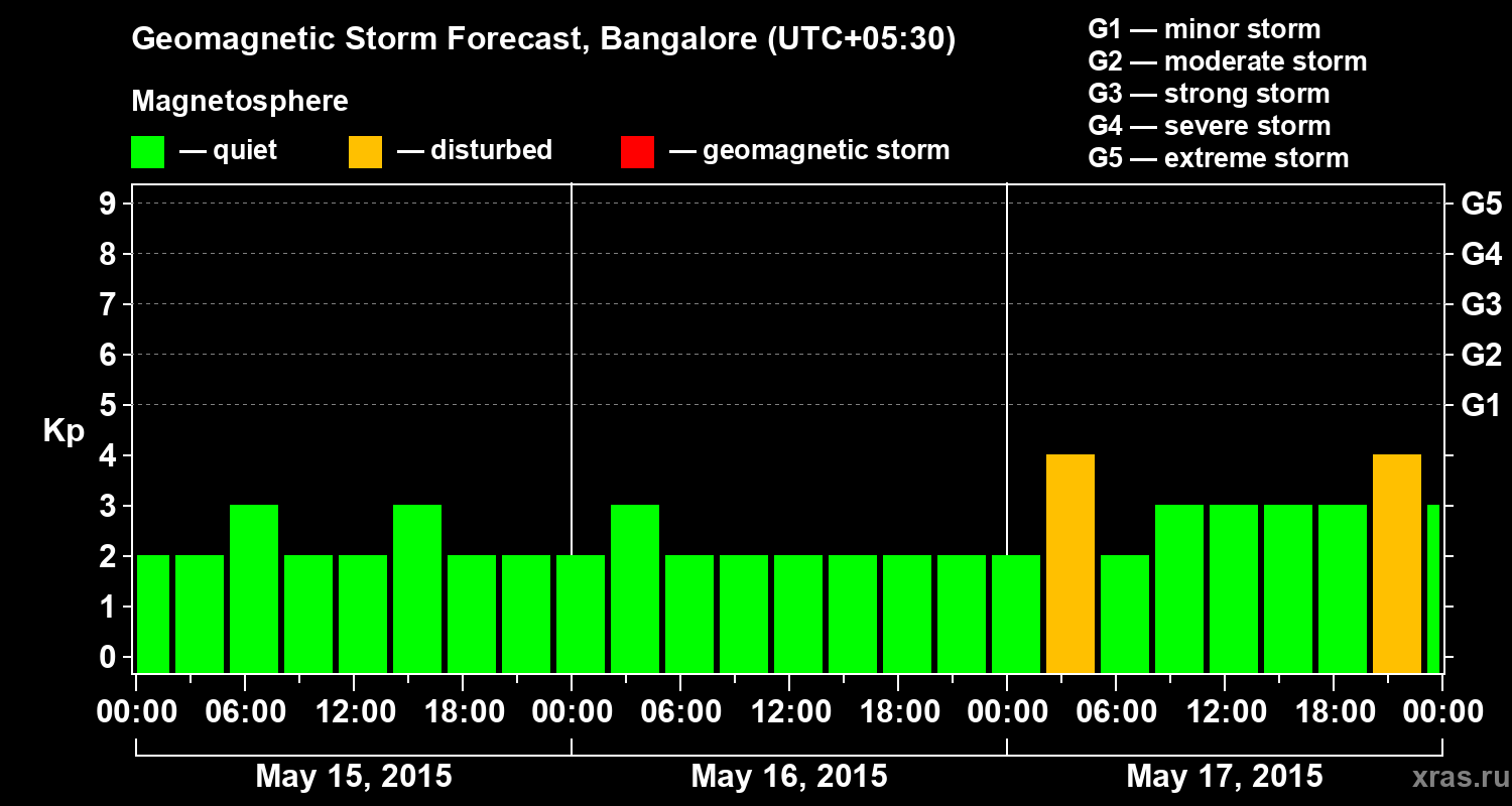 Geomagnetic storm forecast in Bangalore for May 15, 2015