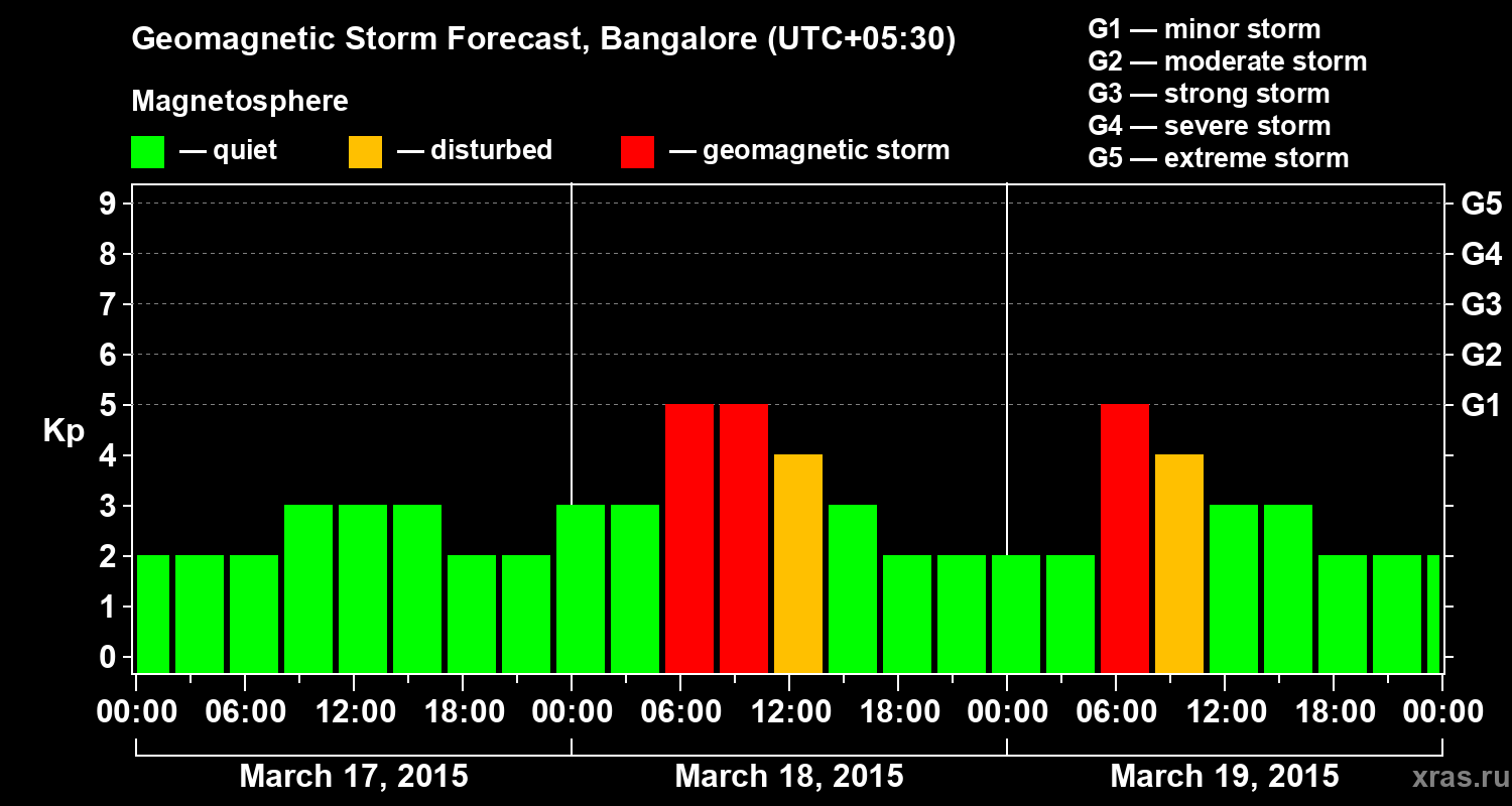 Geomagnetic storm forecast in Bangalore for Mar 17, 2015