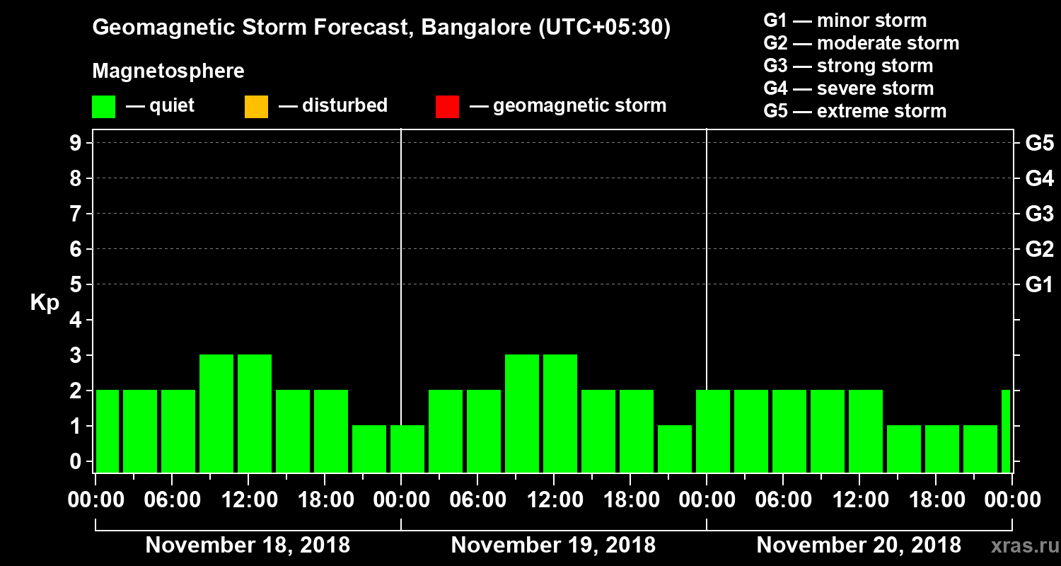 Geomagnetic storm forecast in Bangalore for Nov 18, 2018