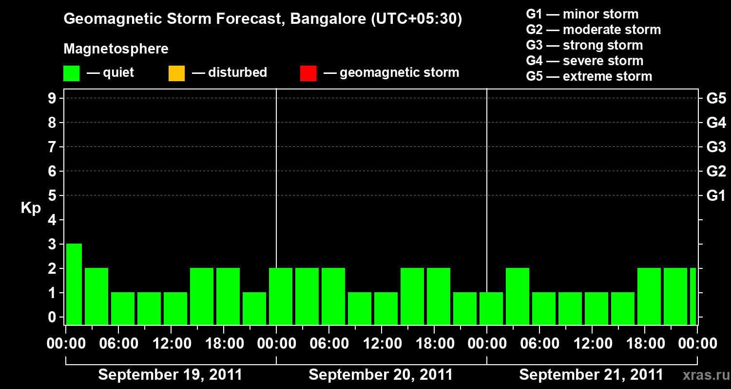 Geomagnetic storm forecast in Bangalore for Sep 19, 2011