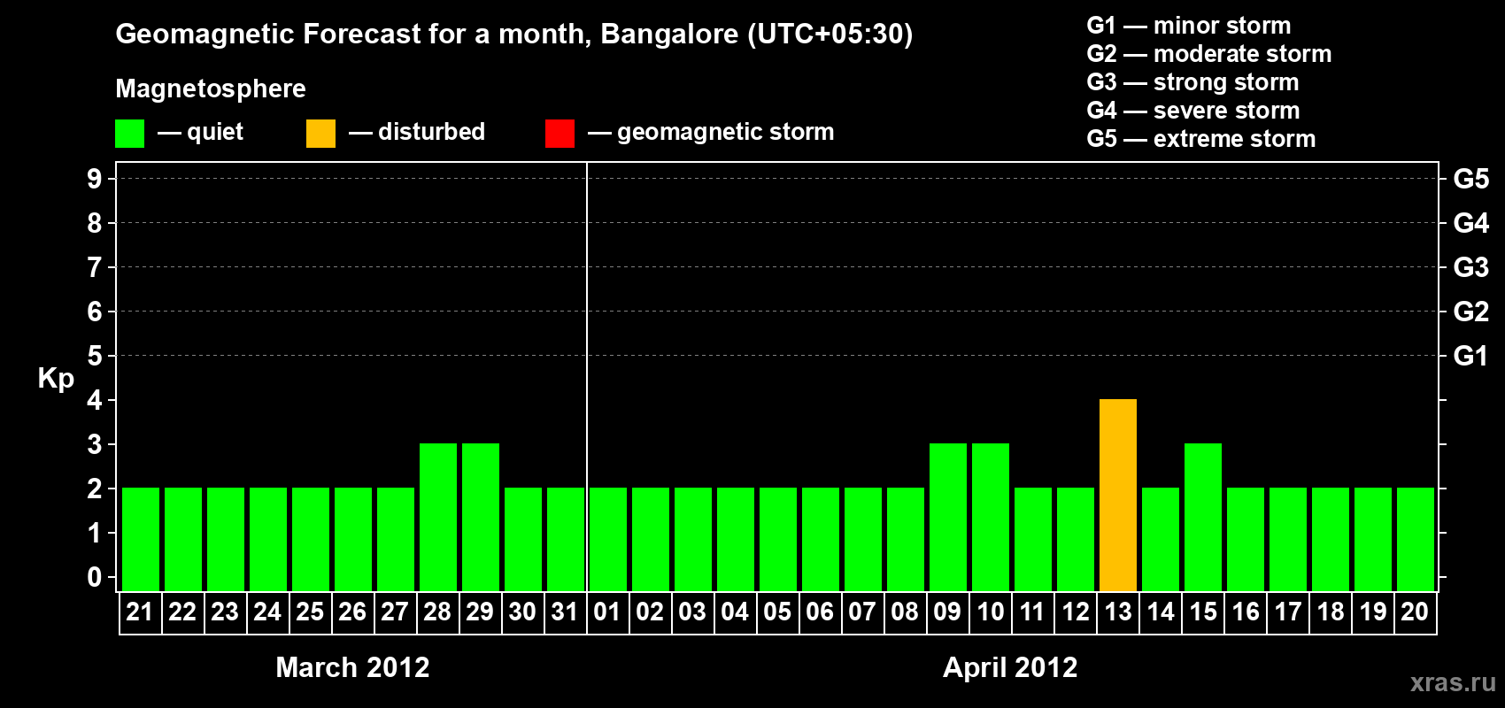 Geomagnetic storm forecast in Bangalore for Mar 21, 2012