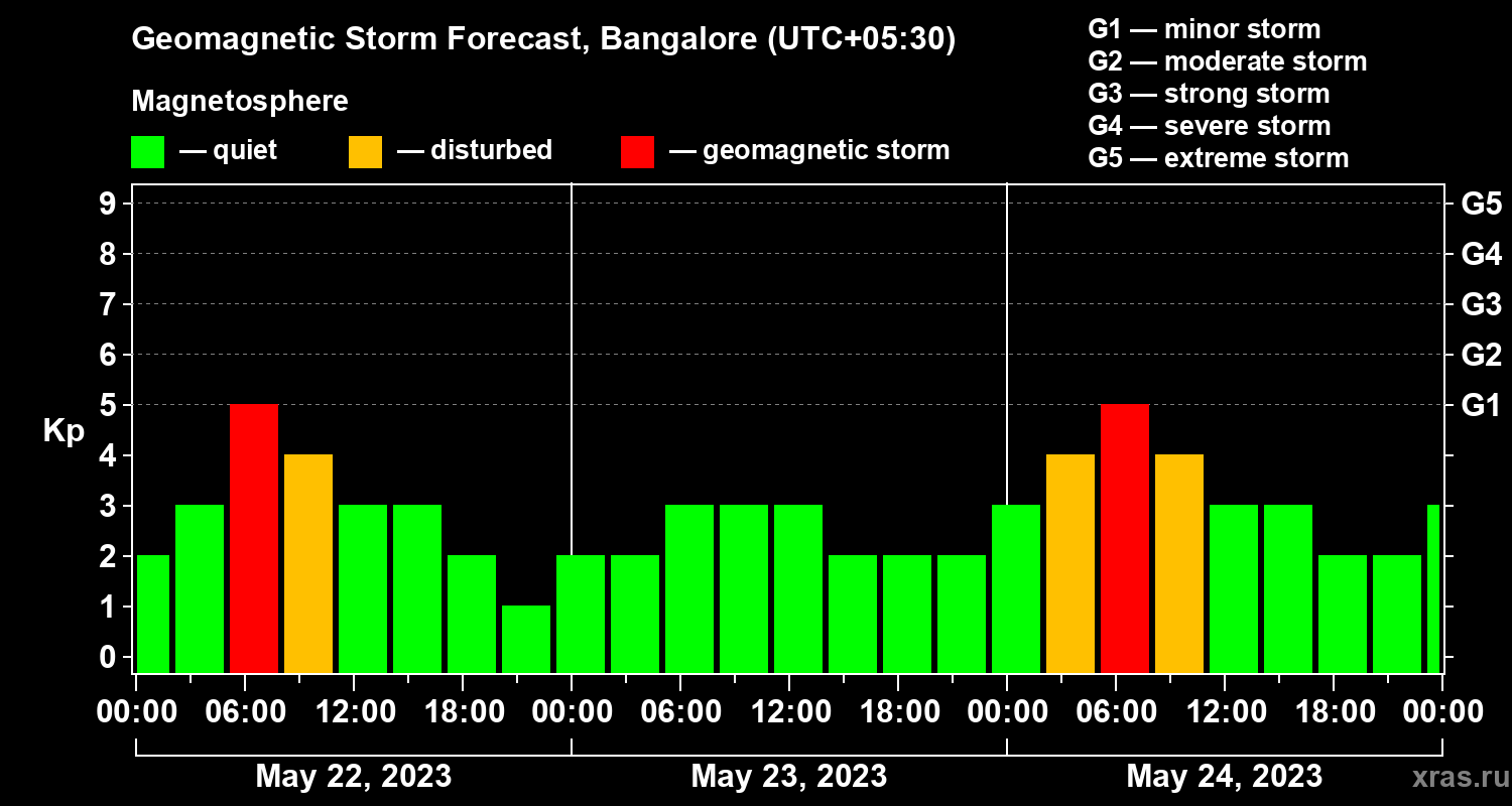 Geomagnetic storm forecast in Bangalore for May 22, 2023