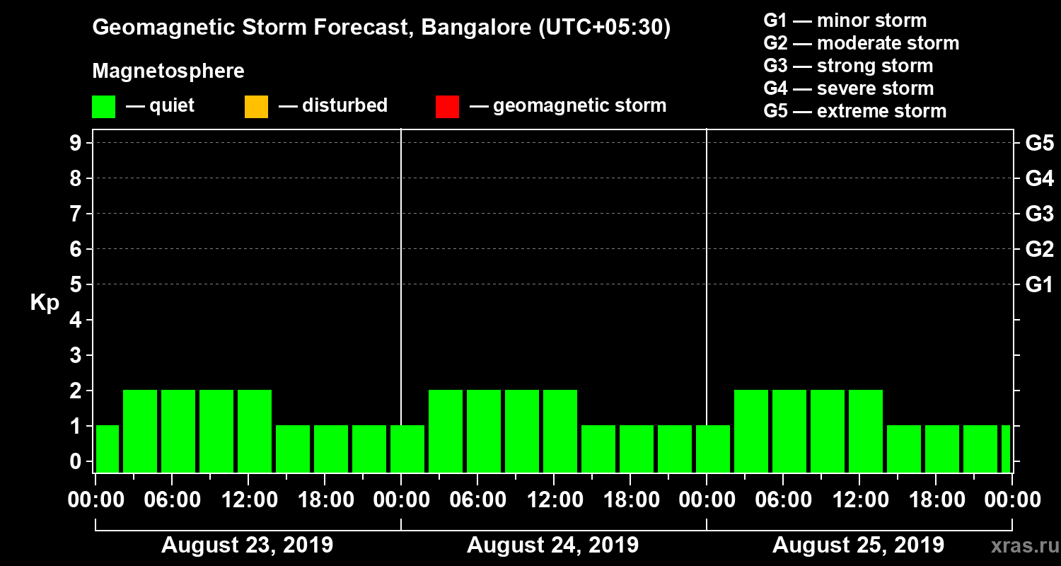 Geomagnetic storm forecast in Bangalore for Aug 23, 2019
