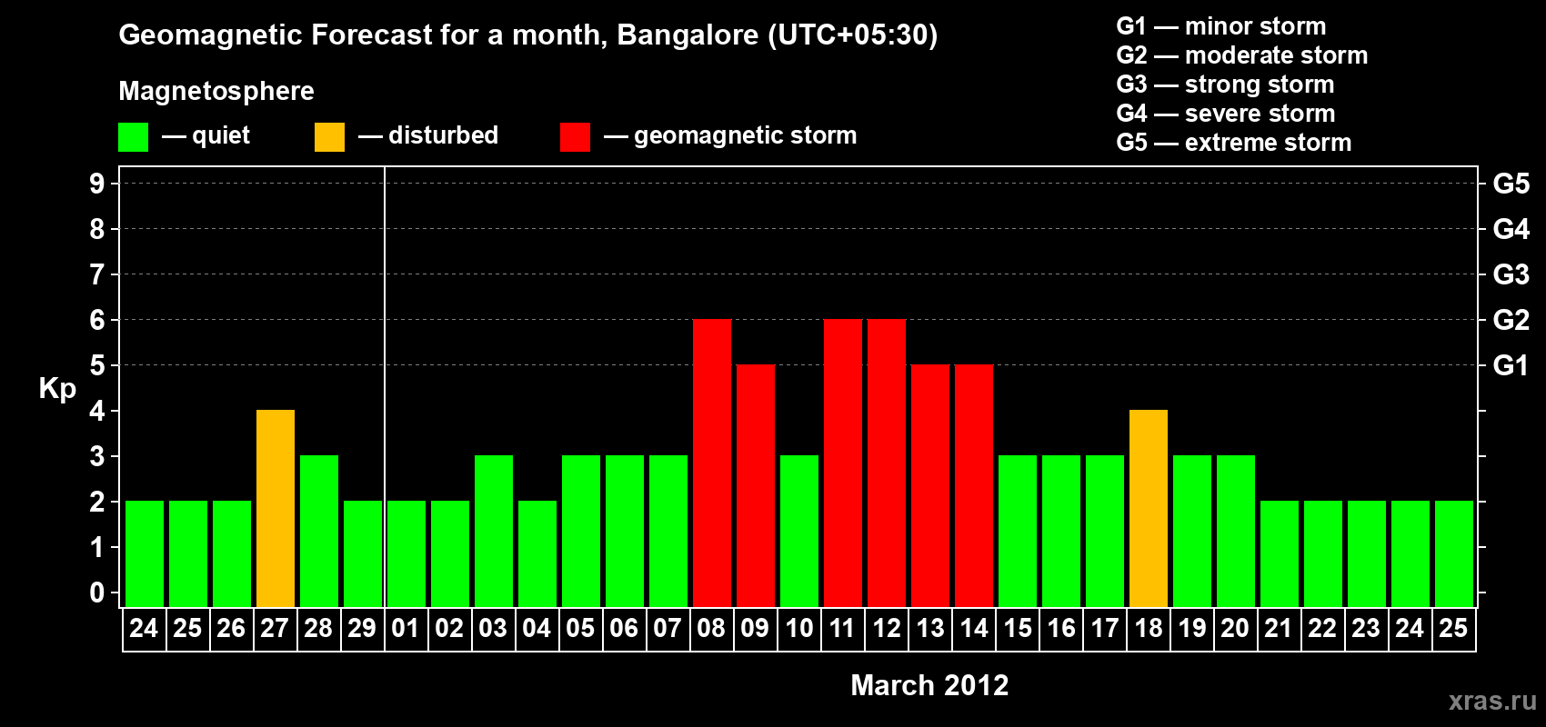 Geomagnetic storm forecast in Bangalore for Feb 24, 2012