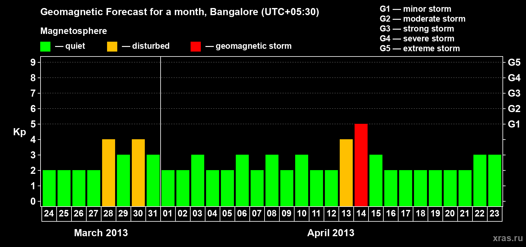 Geomagnetic storm forecast in Bangalore for Mar 24, 2013