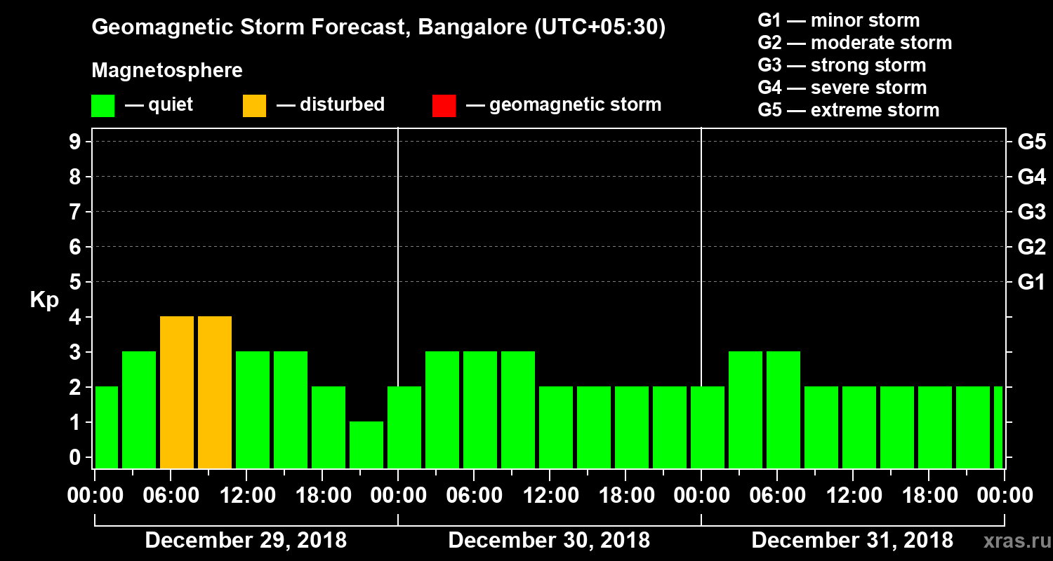 Geomagnetic storm forecast in Bangalore for Dec 29, 2018