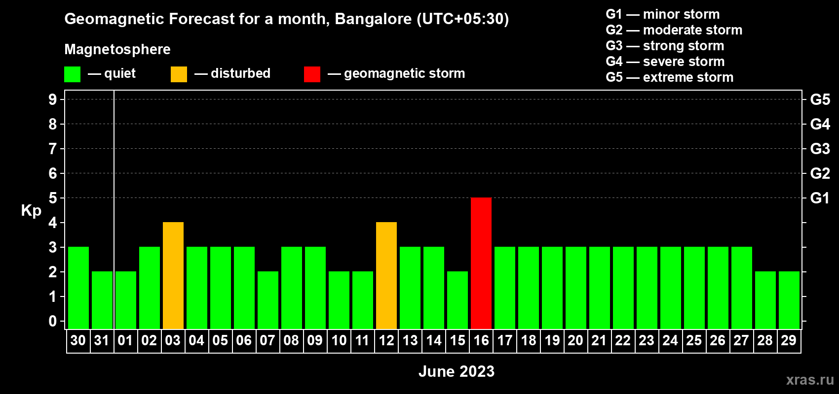 Geomagnetic storm forecast in Bangalore for May 30, 2023