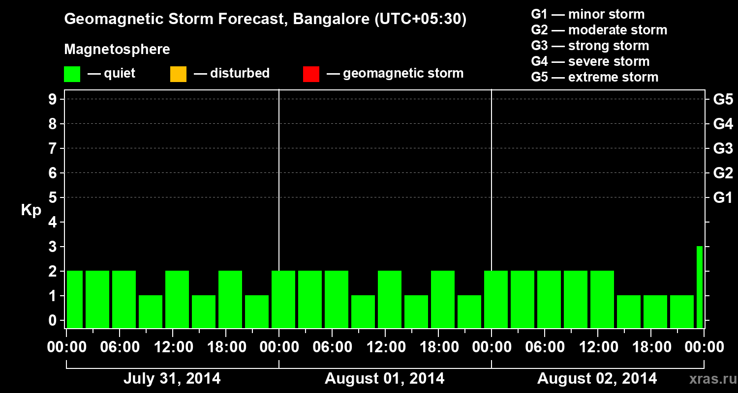 Geomagnetic storm forecast in Bangalore for Jul 31, 2014
