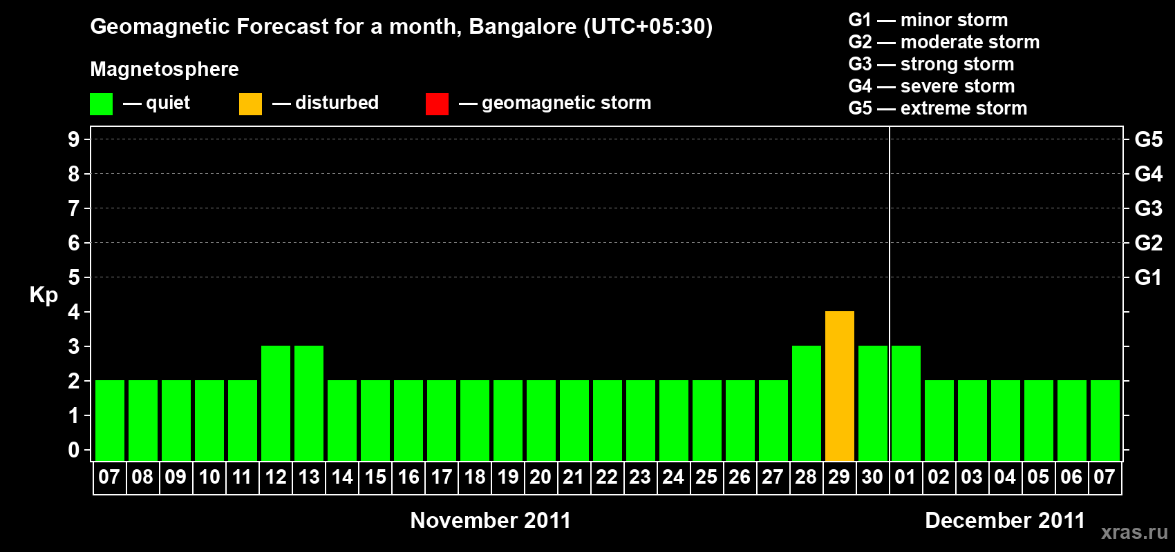 Geomagnetic storm forecast in Bangalore for Nov 07, 2011