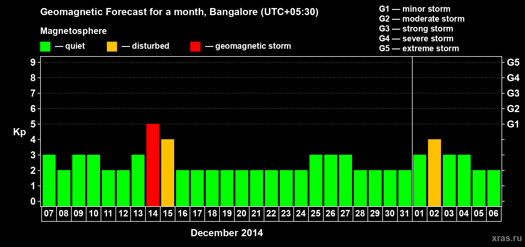 Geomagnetic storm forecast in Bangalore for Dec 07, 2013