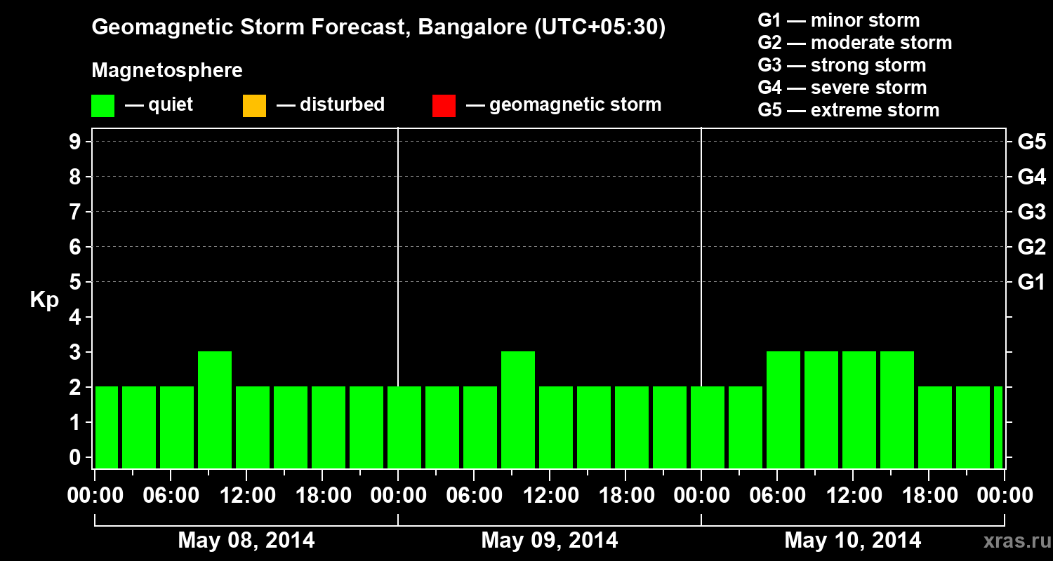 Geomagnetic storm forecast in Bangalore for May 08, 2014