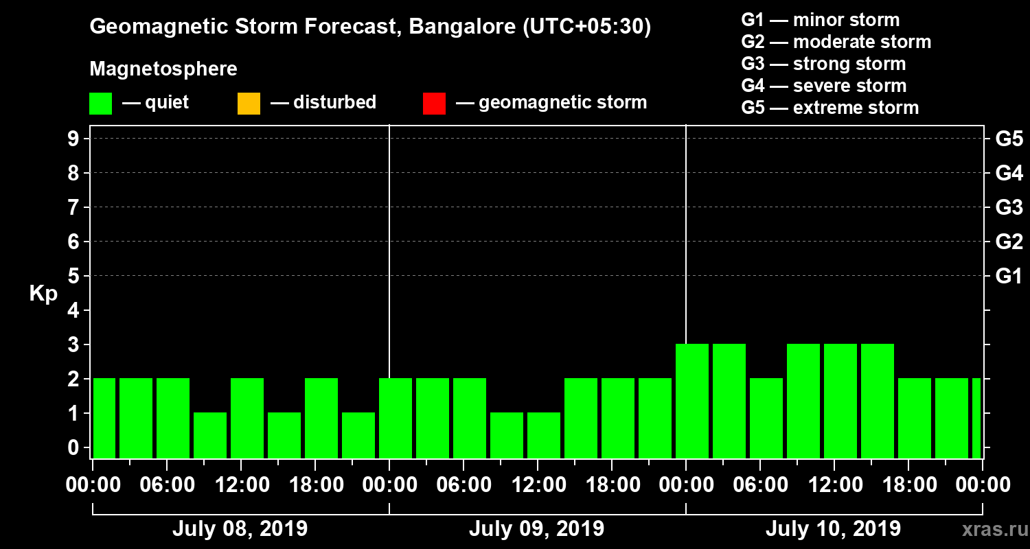 Geomagnetic storm forecast in Bangalore for Jul 08, 2019