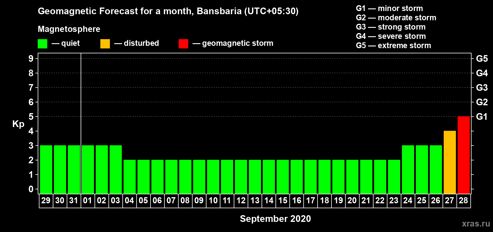 Geomagnetic storm forecast in Bansbaria for Aug 29, 2020