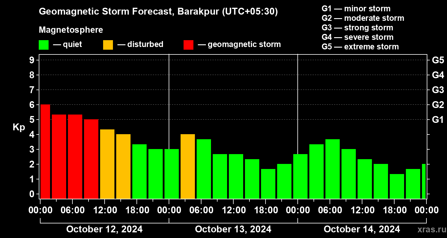 Geomagnetic storm forecast in Barakpur for Oct 12, 2024