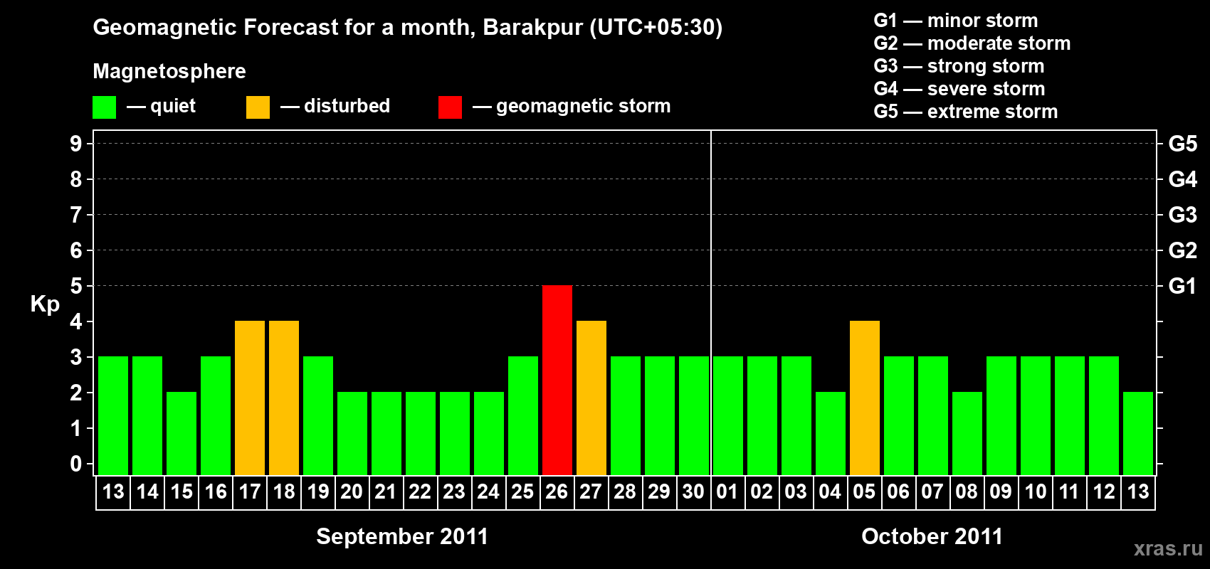 Geomagnetic storm forecast in Barakpur for Sep 13, 2011