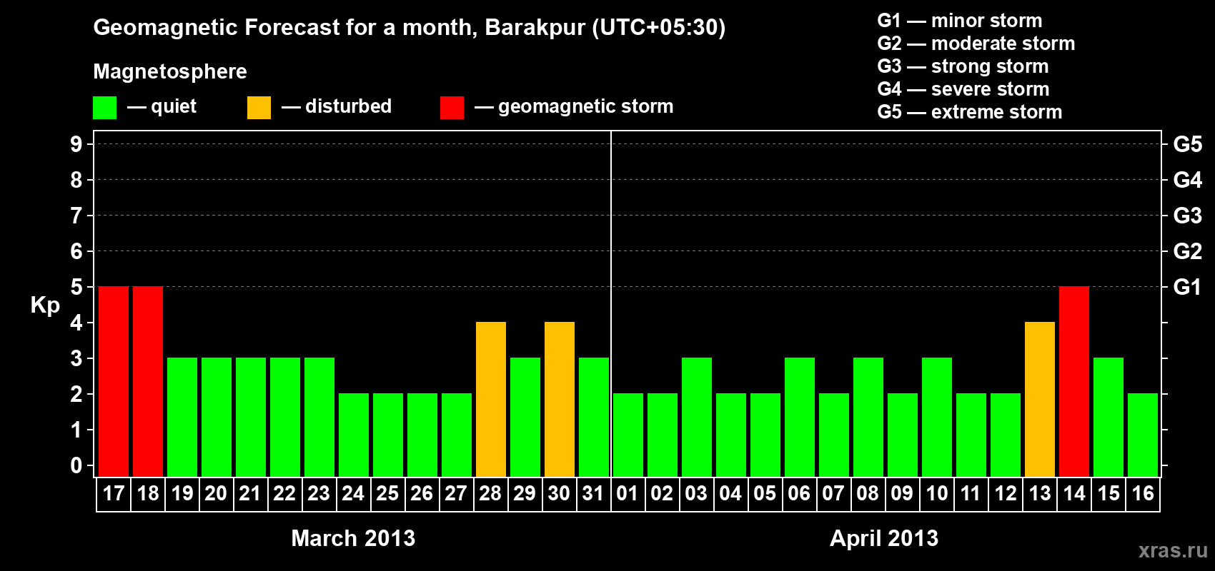 Geomagnetic storm forecast in Barakpur for Mar 17, 2013