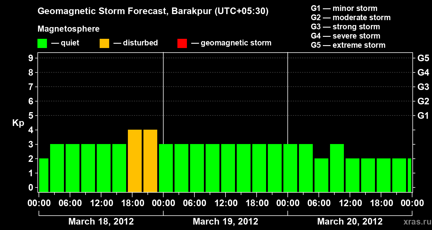 Geomagnetic storm forecast in Barakpur for Mar 18, 2012