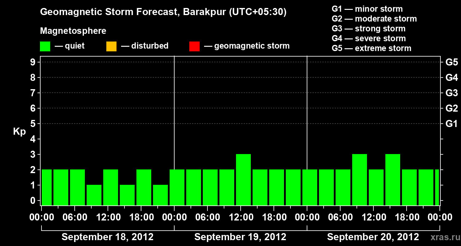 Geomagnetic storm forecast in Barakpur for Sep 18, 2012