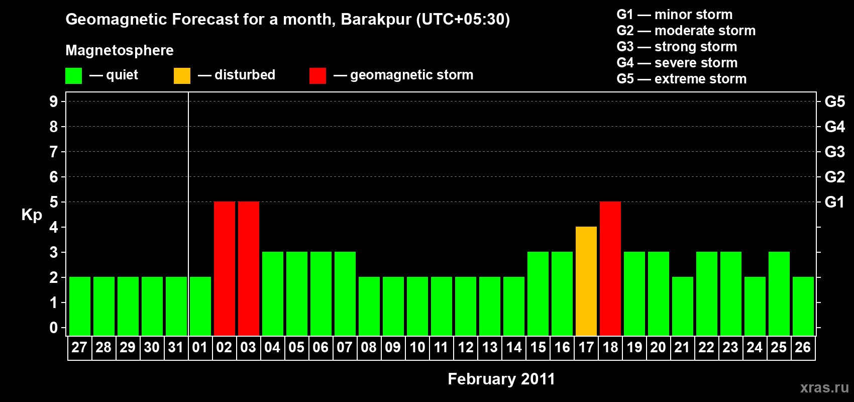 Geomagnetic storm forecast in Barakpur for Jan 27, 2011