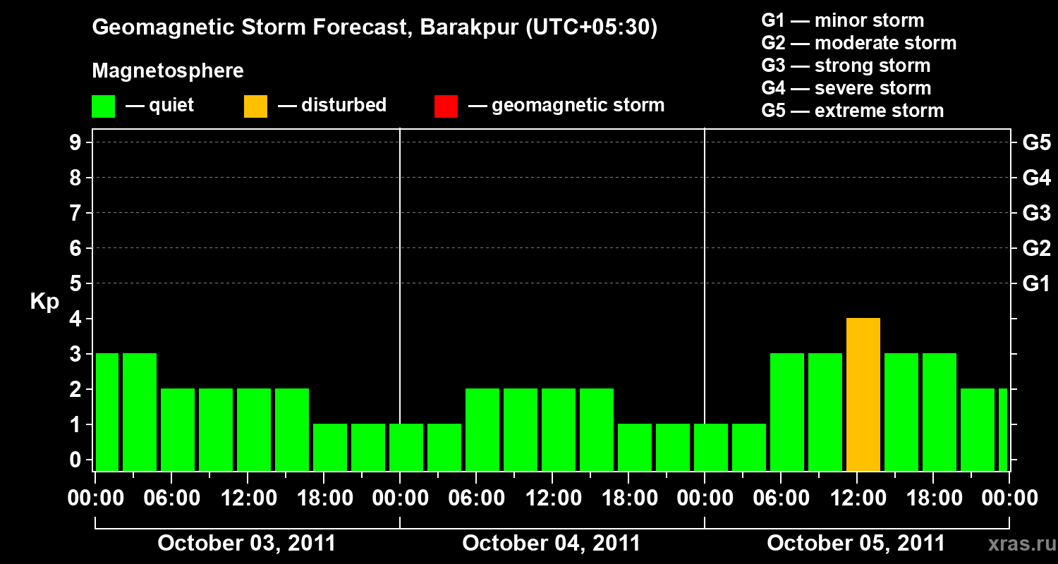 Geomagnetic storm forecast in Barakpur for Oct 03, 2011