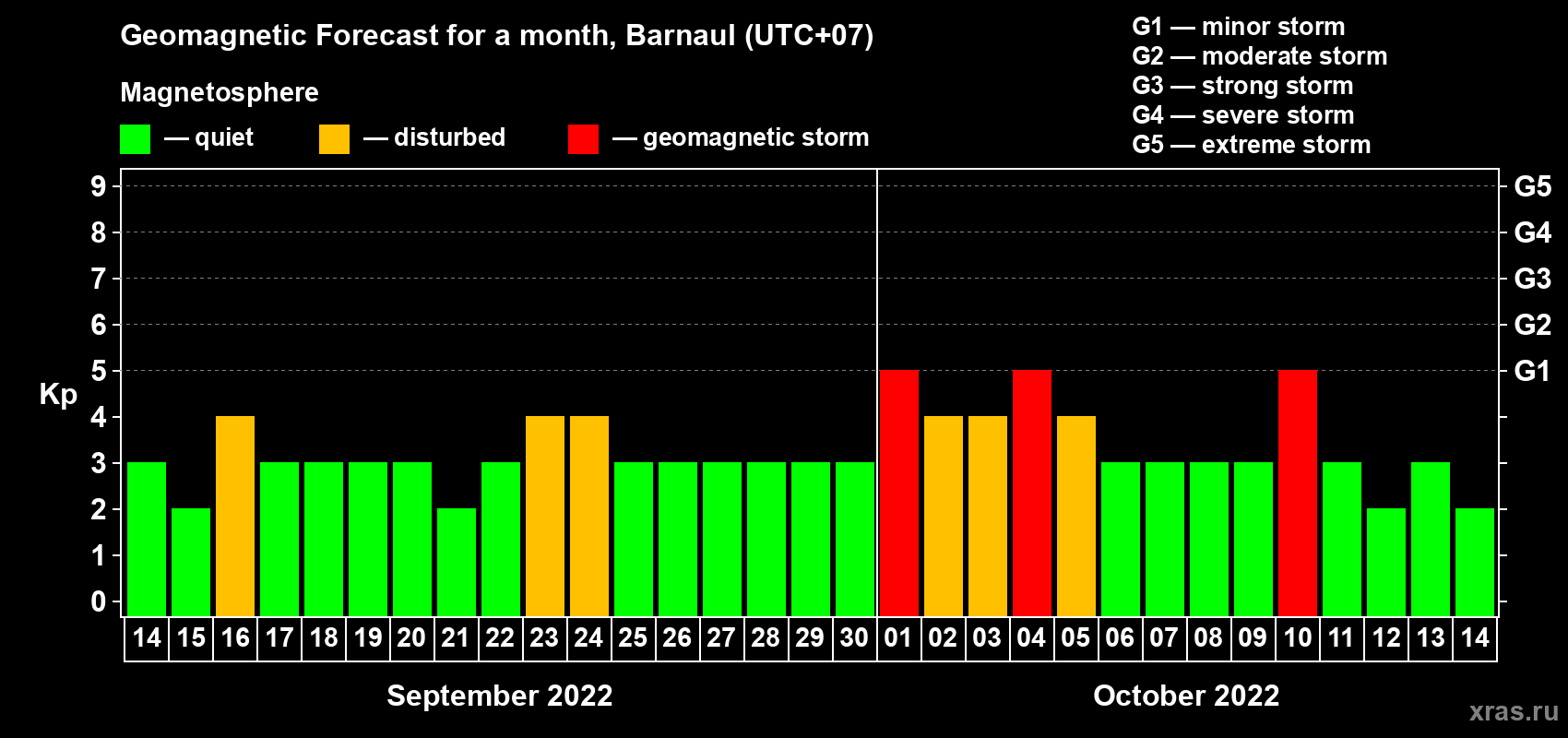 Geomagnetic storm forecast in Barnaul for Sep 14, 2022