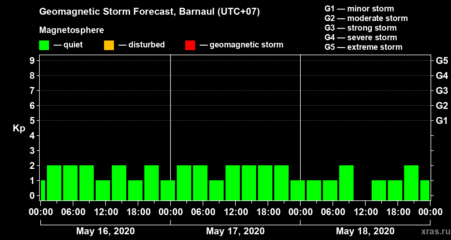 Geomagnetic activity forecast in Barnaul — May 16, 2020