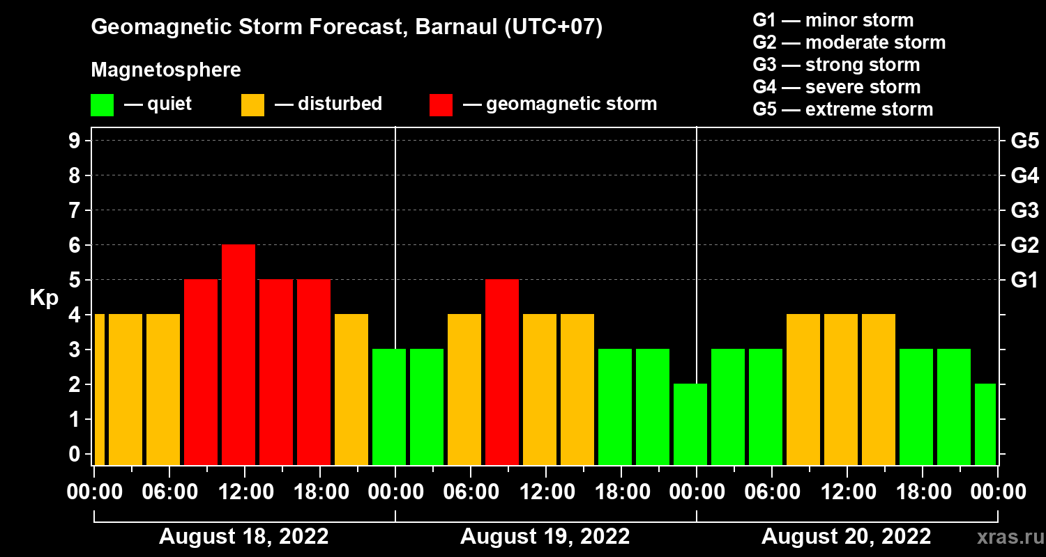 Geomagnetic storm forecast in Barnaul for Aug 18, 2022