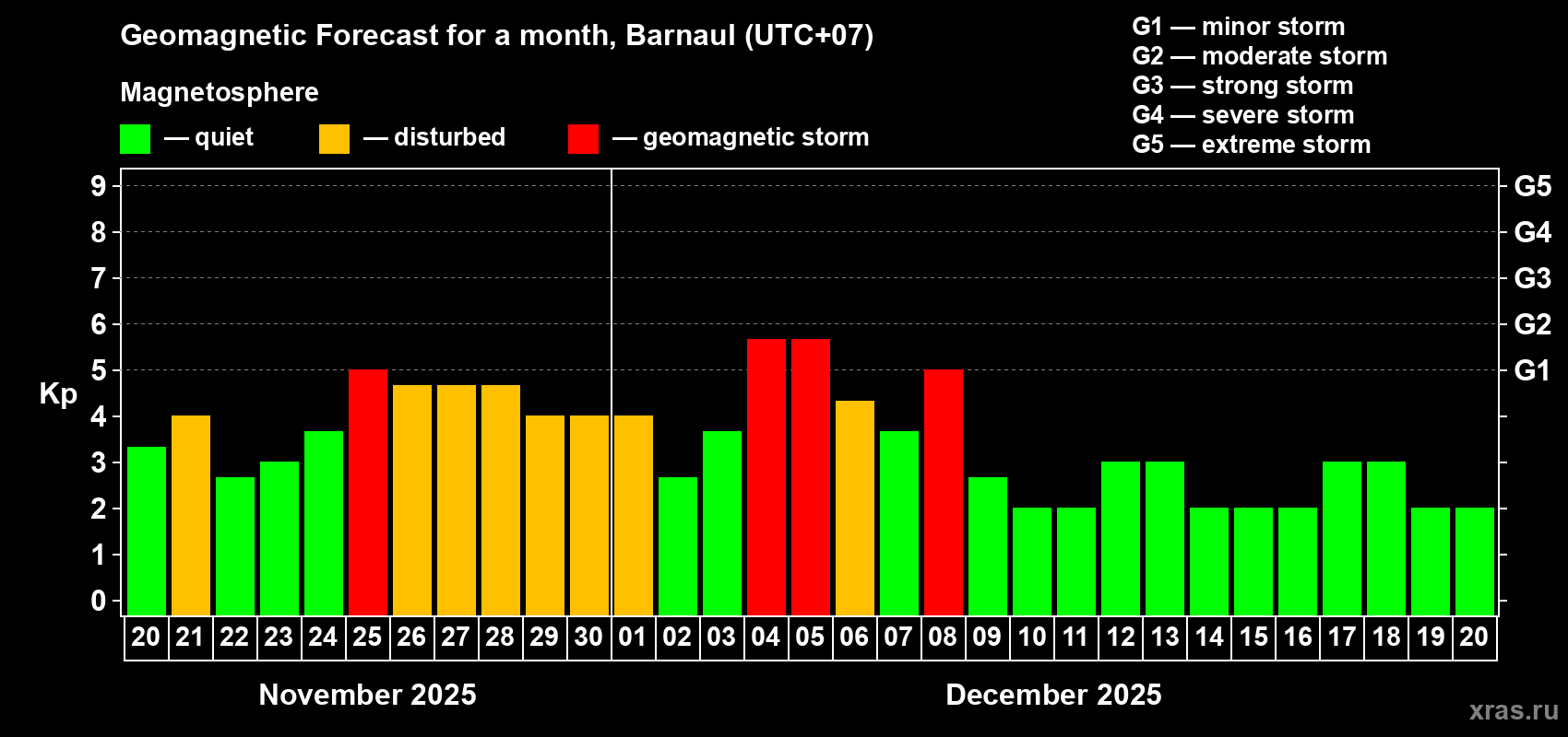 Geomagnetic storm forecast in Barnaul for Nov 20, 2025