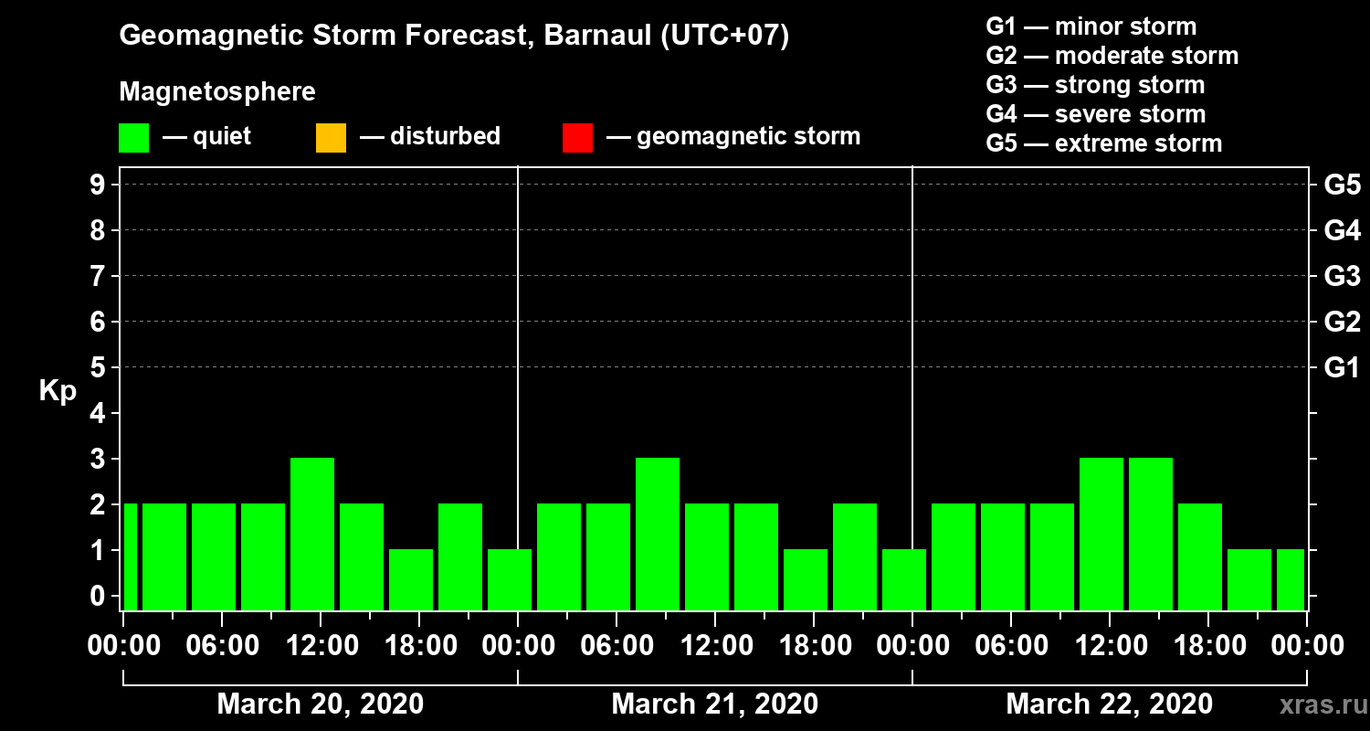 Geomagnetic storm forecast in Barnaul for Mar 20, 2020