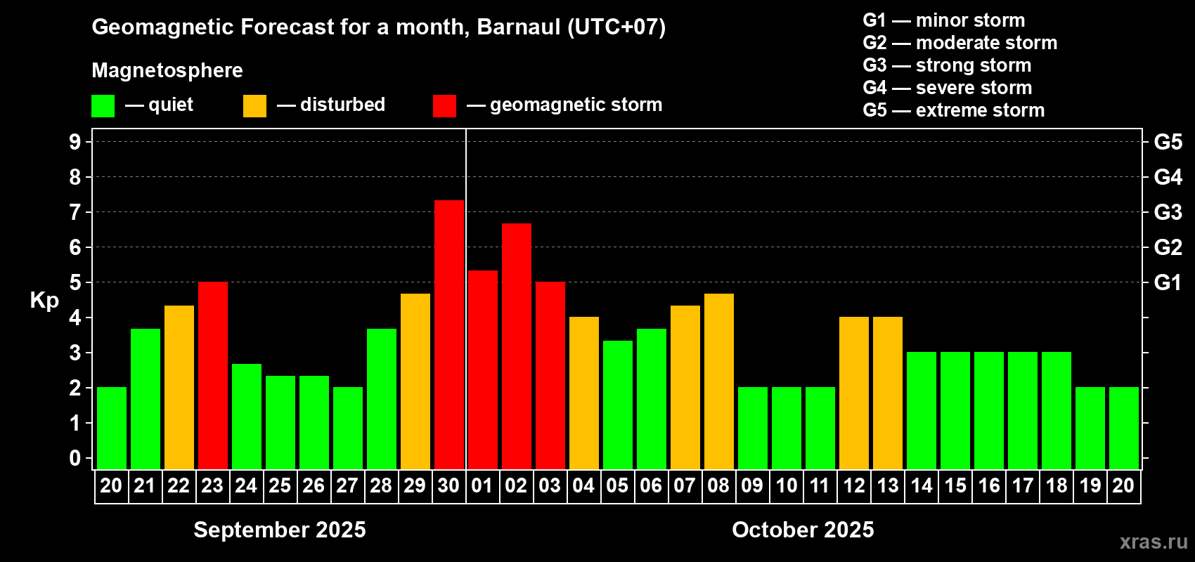 Geomagnetic storm forecast in Barnaul for Sep 20, 2025