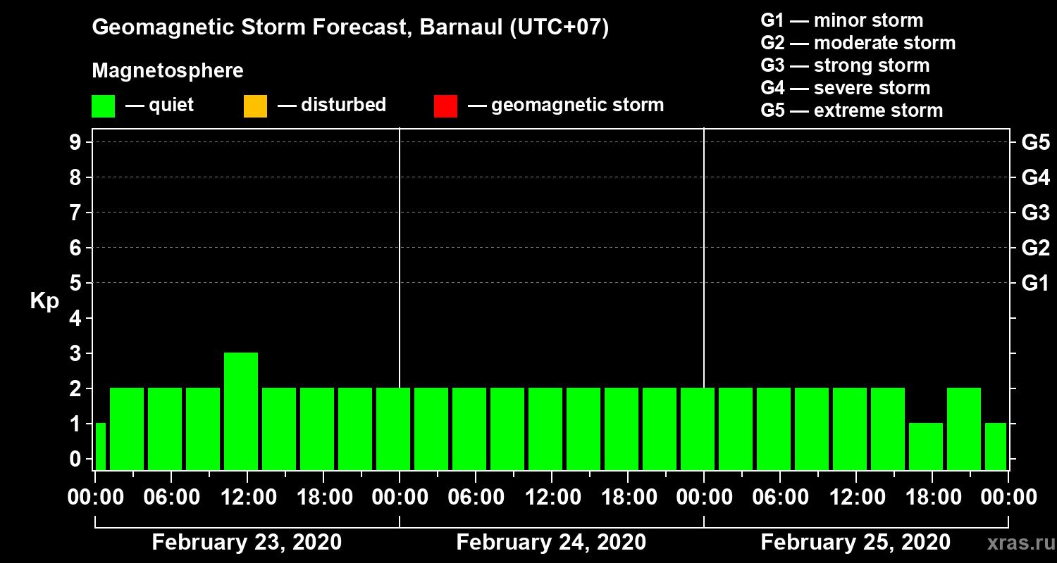 Geomagnetic activity forecast in Barnaul — Feb 23, 2020