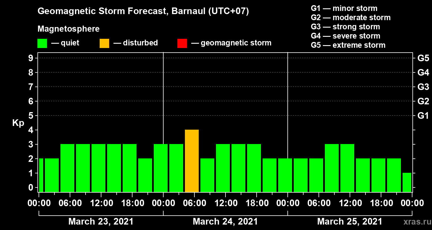 Geomagnetic activity forecast in Barnaul — Mar 23, 2021