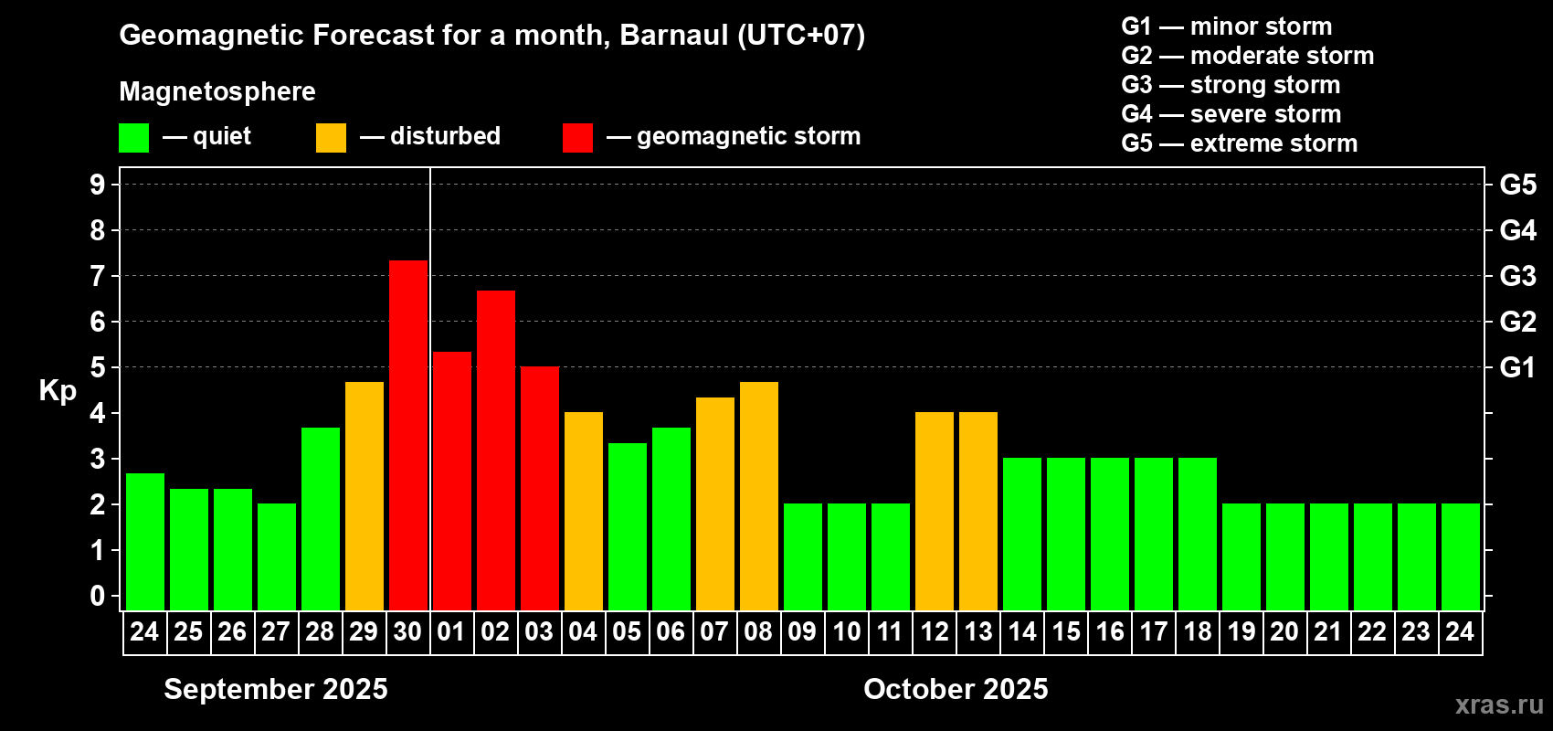 Geomagnetic storm forecast in Barnaul for Sep 24, 2025