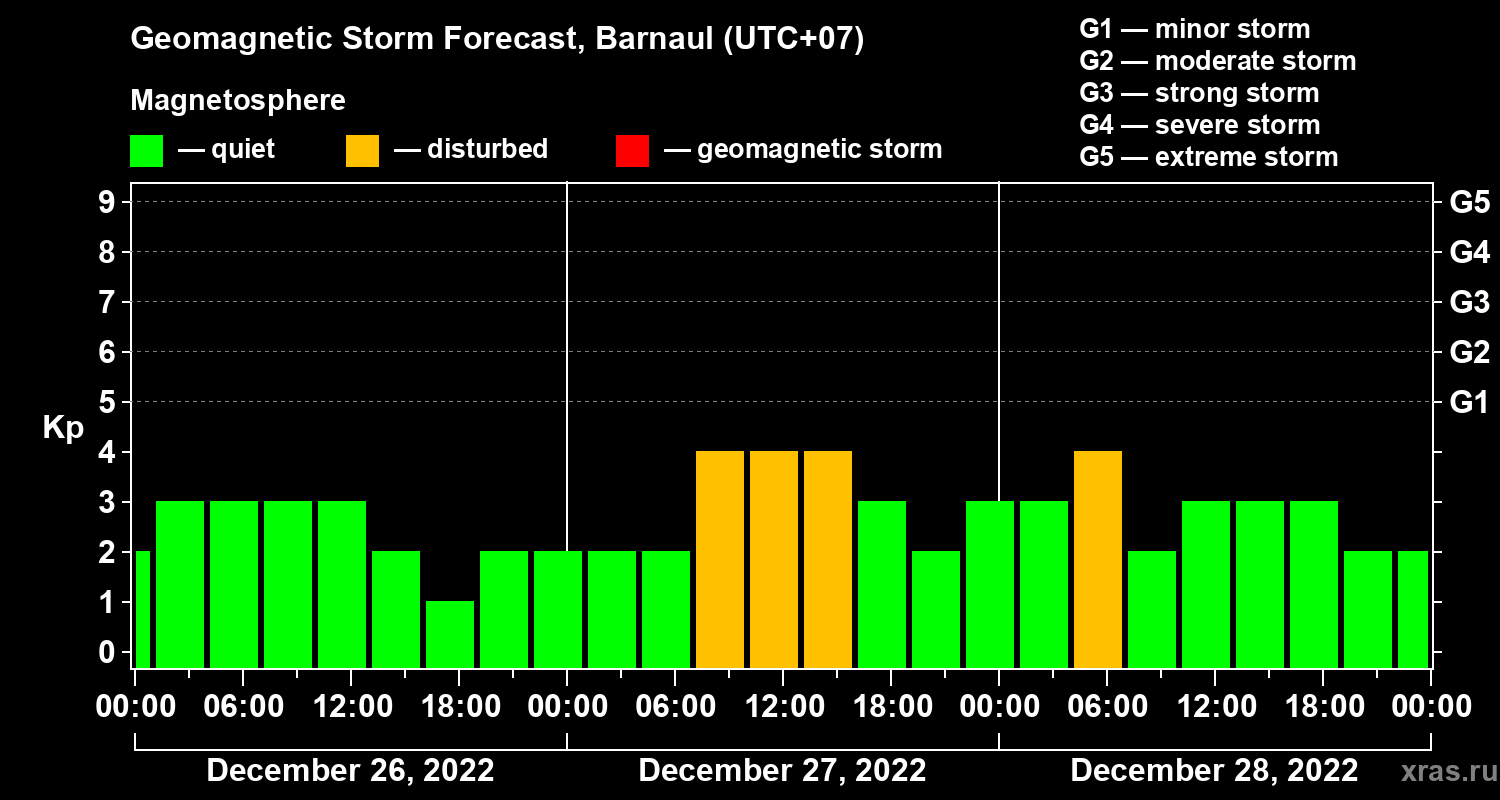 Geomagnetic activity forecast in Barnaul — Dec 26, 2022