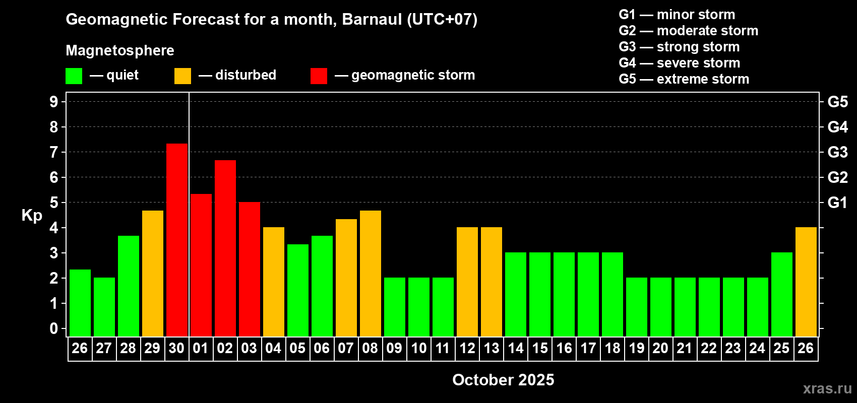 Geomagnetic storm forecast in Barnaul for Sep 26, 2025