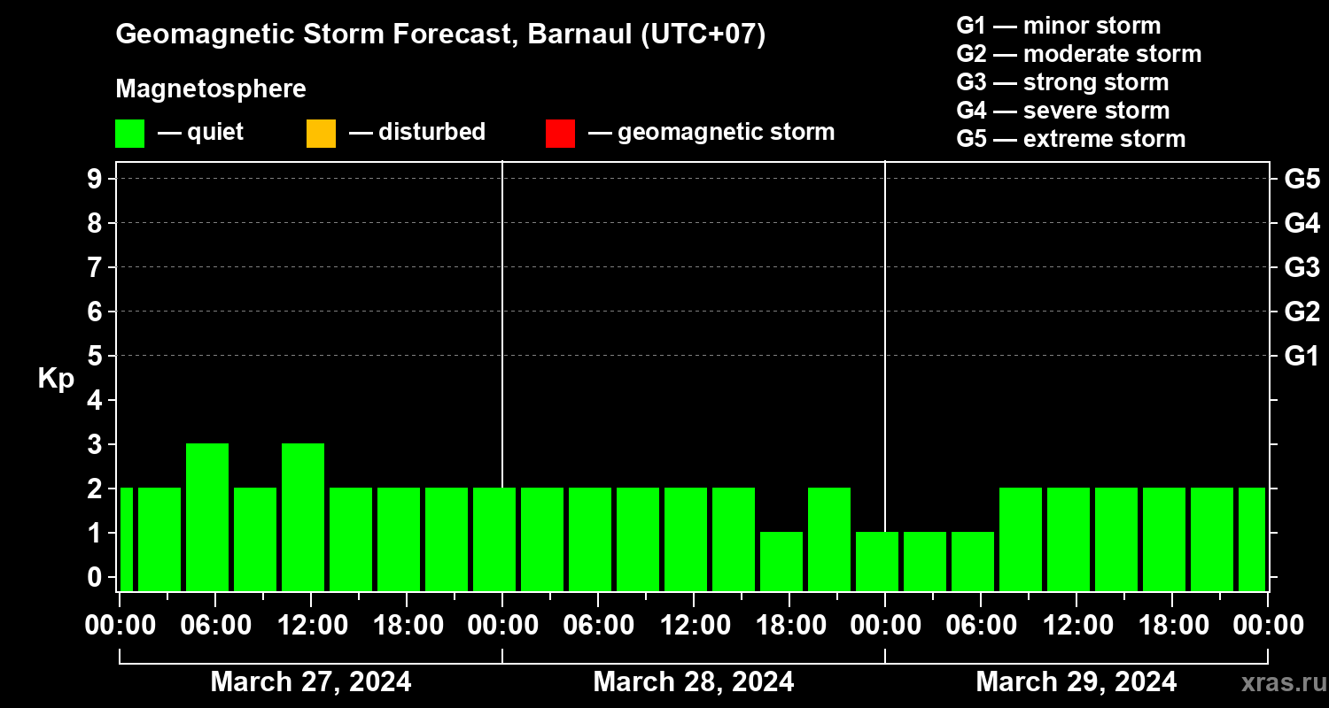 Geomagnetic storm forecast in Barnaul for Mar 27, 2024