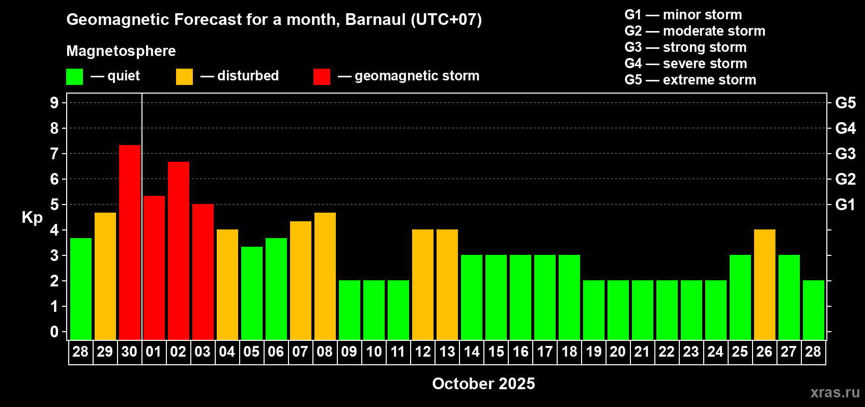Geomagnetic storm forecast in Barnaul for Sep 28, 2025