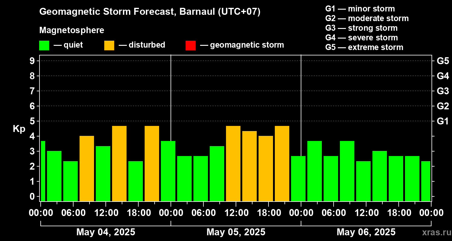 Geomagnetic storm forecast in Barnaul for May 04, 2025