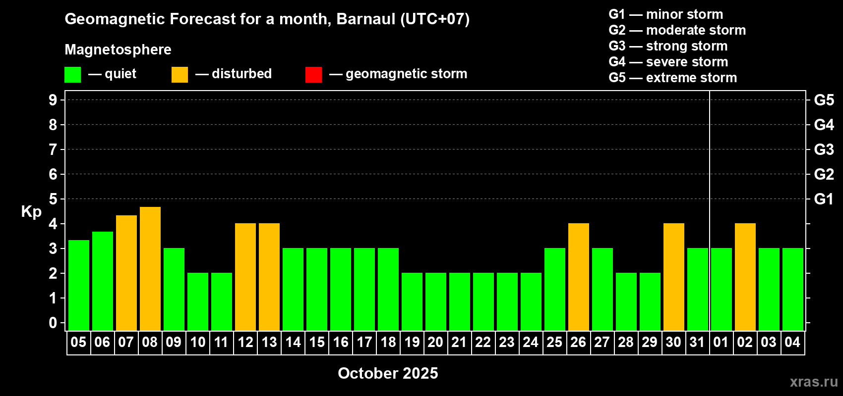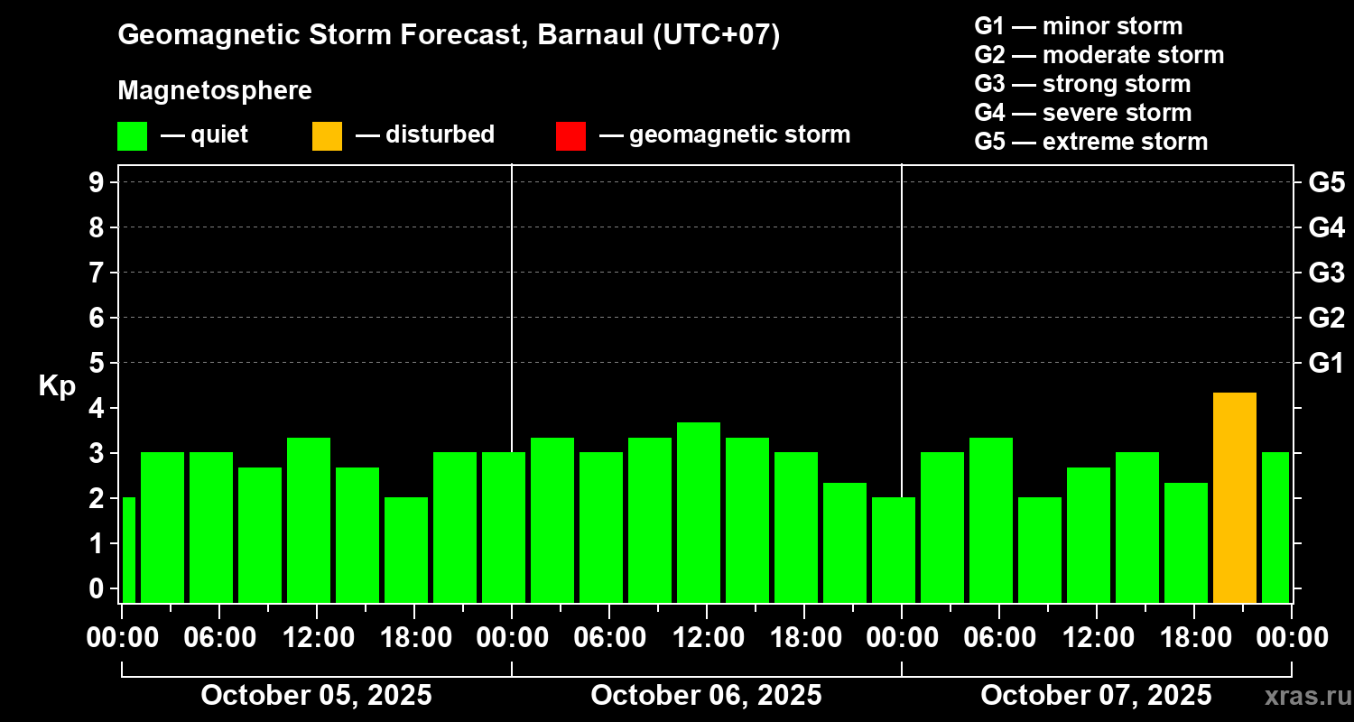 Geomagnetic storm forecast in Barnaul for Oct 05, 2025