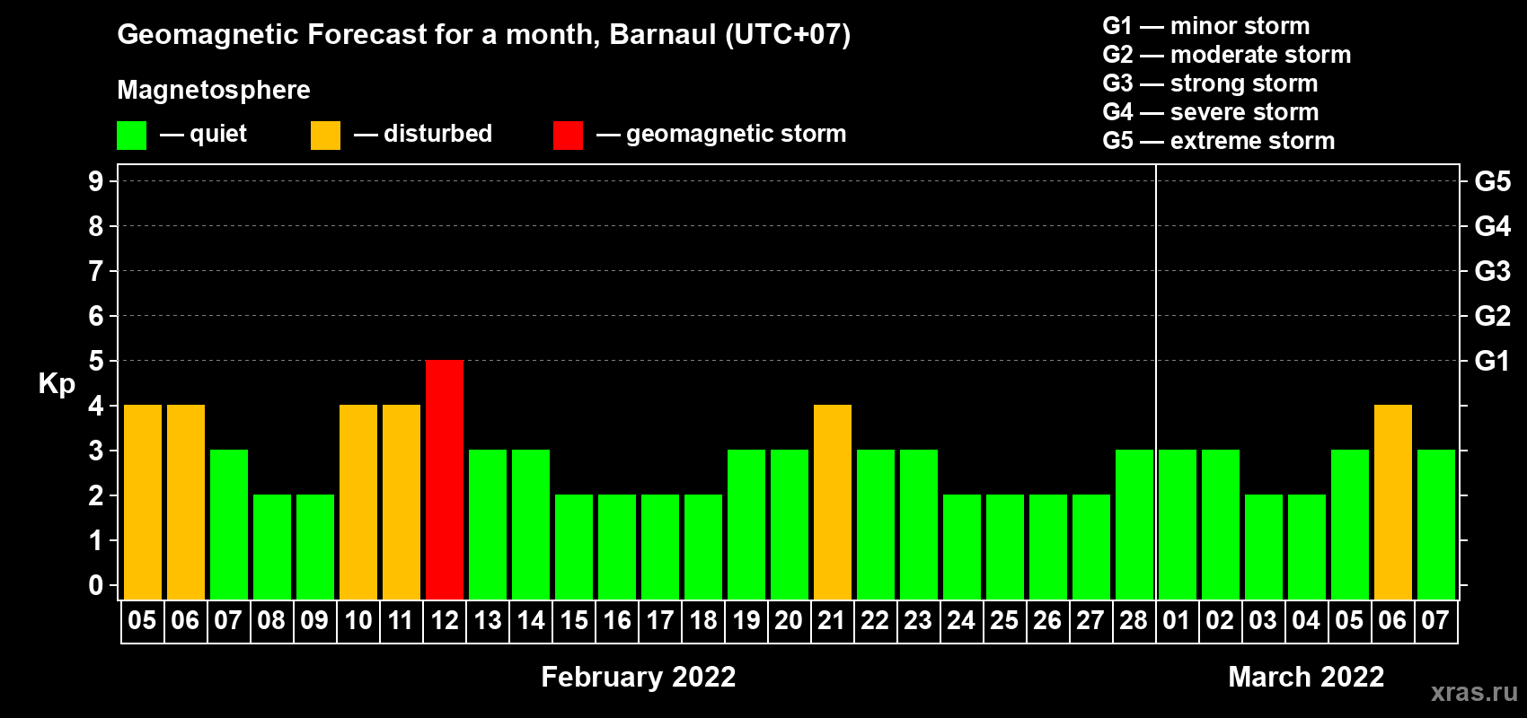 Geomagnetic storm forecast in Barnaul for Feb 05, 2022