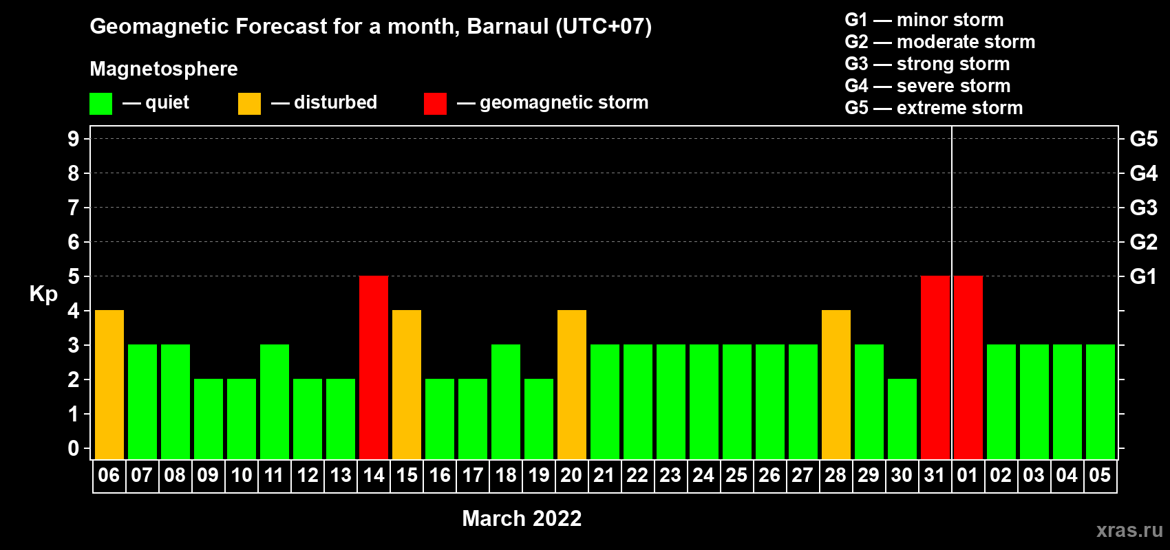 Geomagnetic storm forecast in Barnaul for Mar 06, 2022