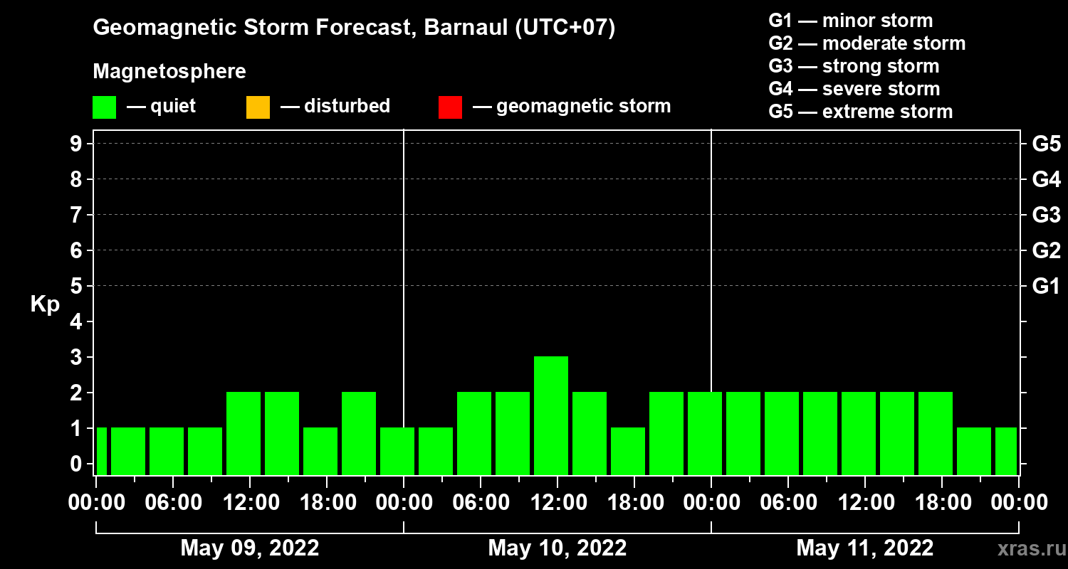 Geomagnetic activity forecast in Barnaul — May 09, 2022