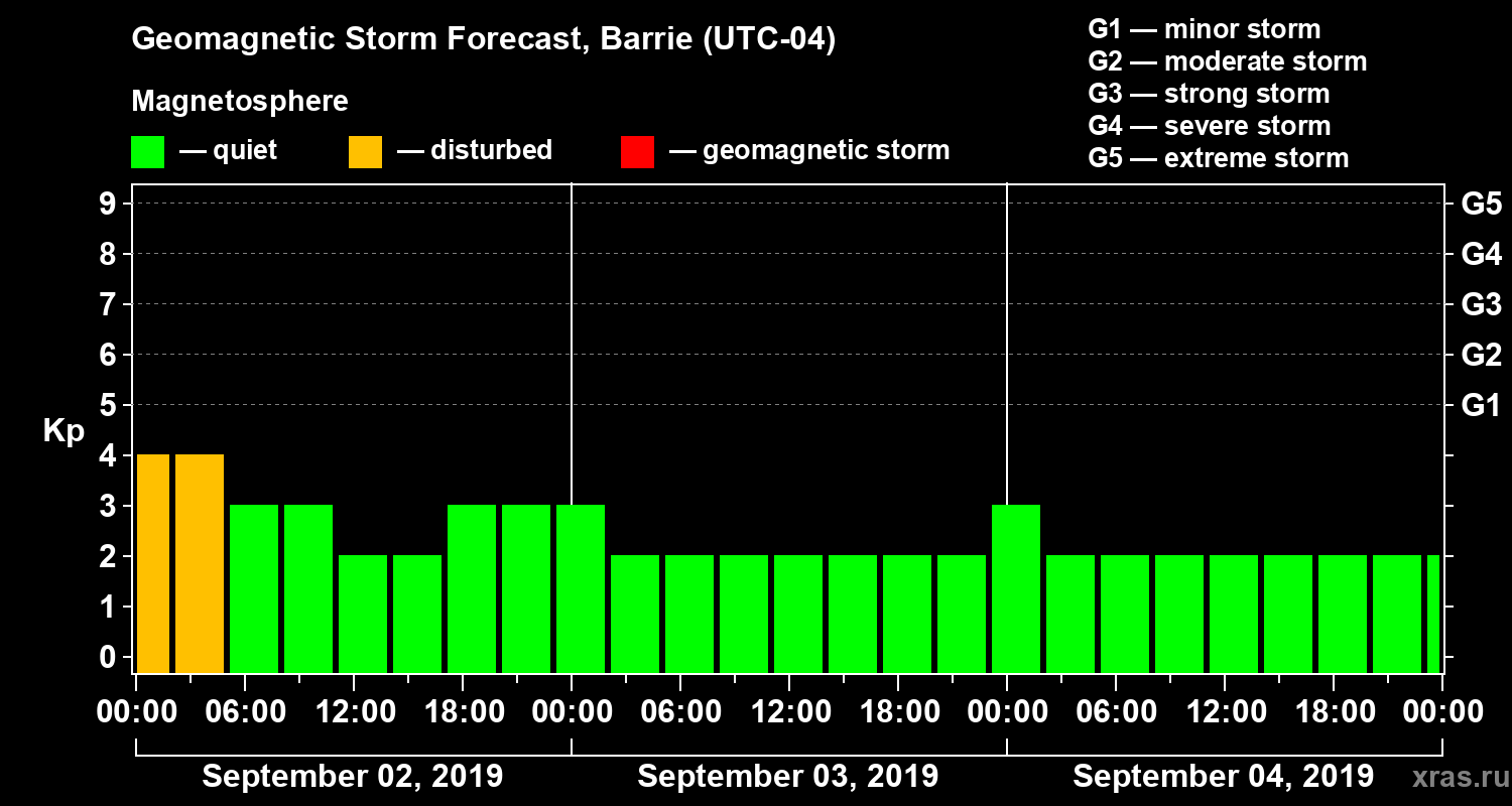 Geomagnetic storm forecast in Barrie for Sep 02, 2019